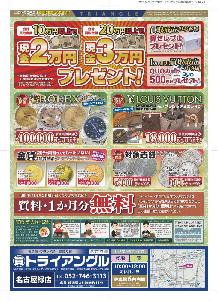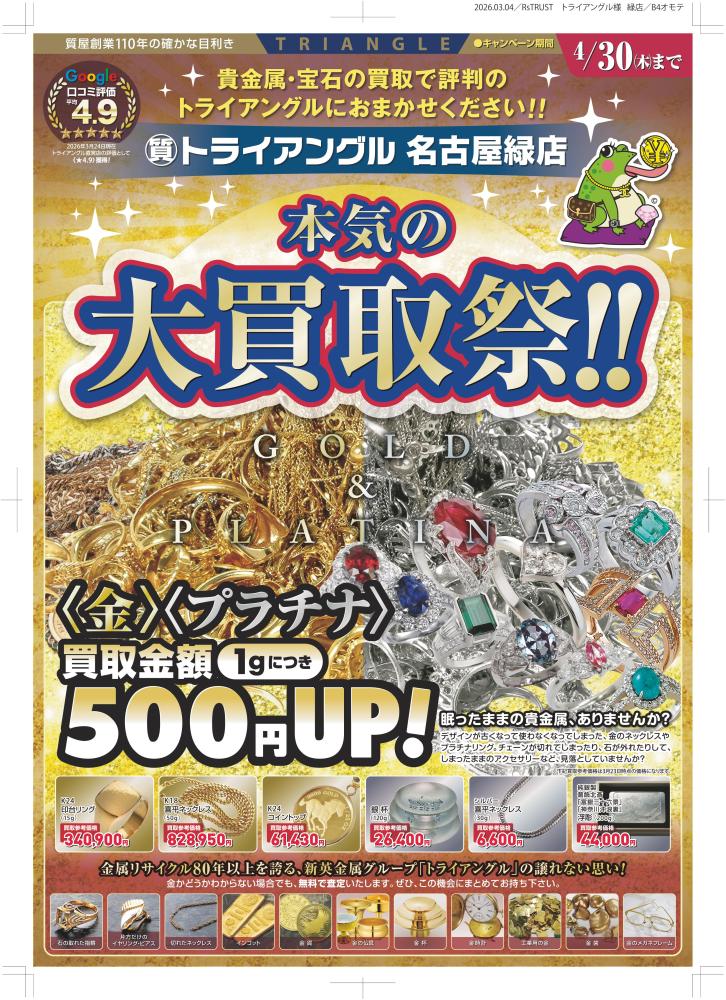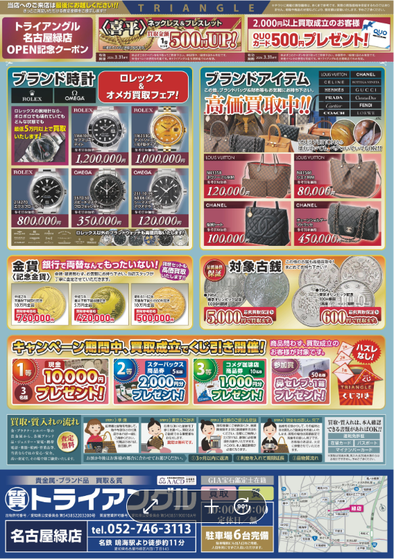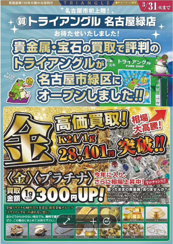 \貴金属・宝石の買取で評判のトライアングルが名古屋市緑区にオープンしました/