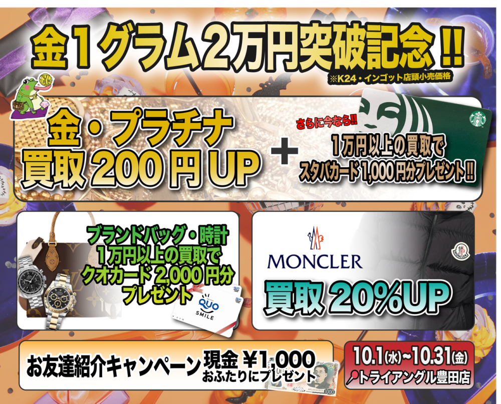【トライアングル豊田店限定】 金1g 20,000円突破記念♪